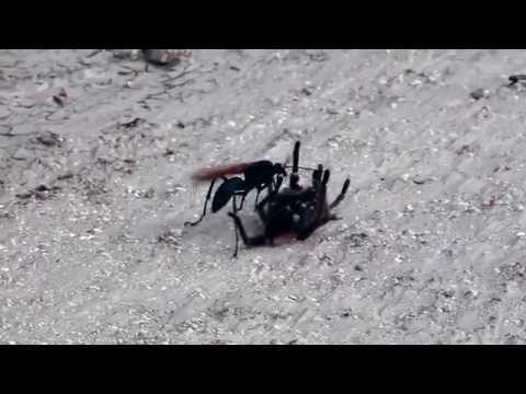 O vídeo foi feito por usuário do Youtube que flagrou a ação. Depois de paralisar a tarântula, a vespa-caçadora consegue arrastar a aranha para o seu ninho, a fim de servir também como alimento para as suas larvas. Apesar de ser menor do que o aracnídeo, essa vespa tem um veneno poderoso e uma das picadas mais dolorosas do mundo. A tarântula que o diga!